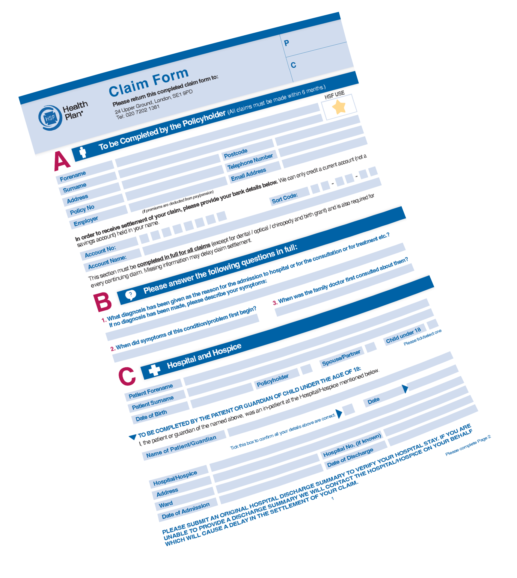 Please ensure you enclose original receipts or good-quality copies when submitting your postal claim form. Return your completed form and receipts to: HSF Health Plan, 24 Upper Ground, London, SE1 9PD.