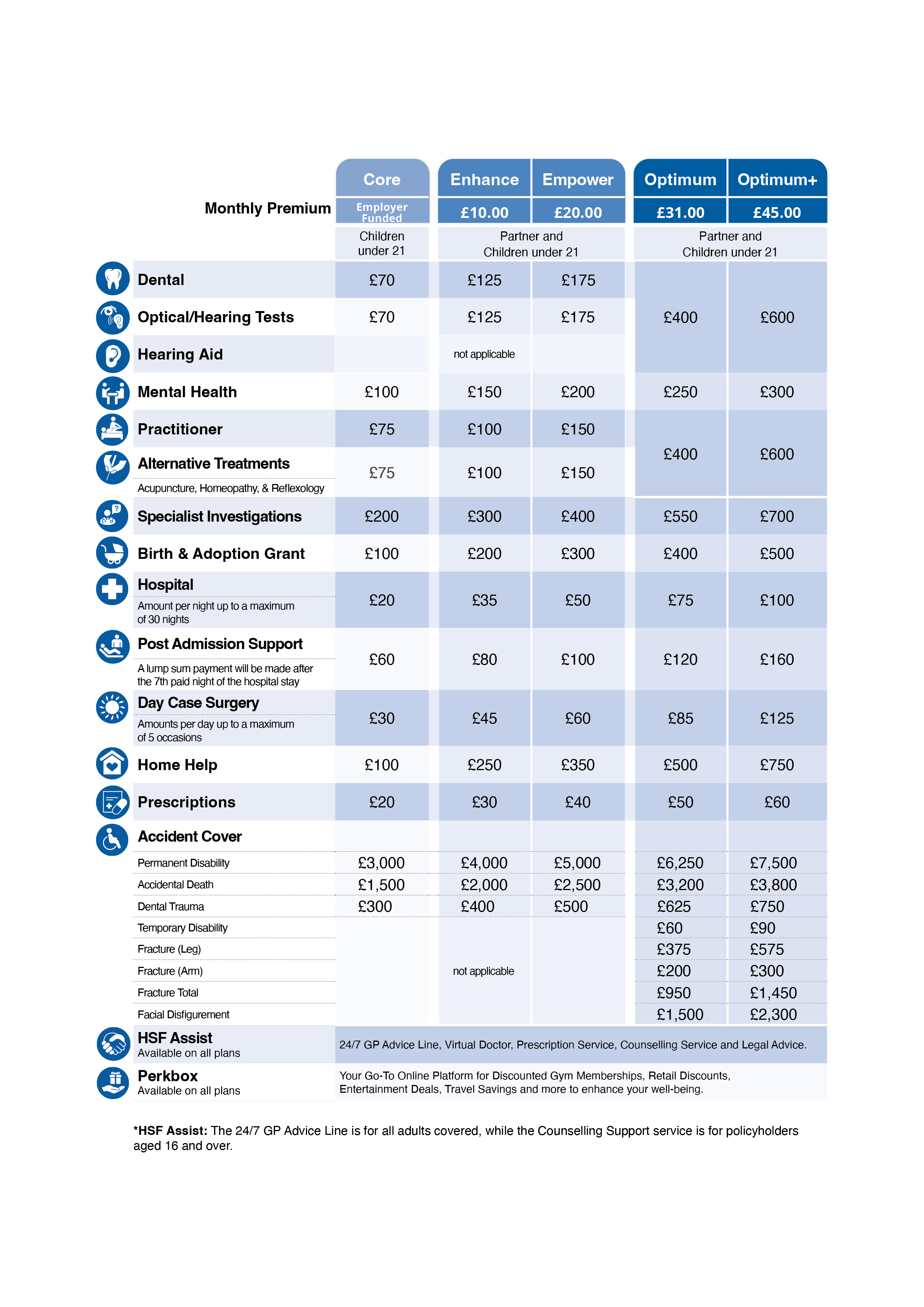 Fitzroy cares about your health and wellbeing, that’s why they’re covering the cost of your Core Level of the OptiLife health plan. Through their partnership with HSF Health Plan, you can access a wide range of valuable health benefits.